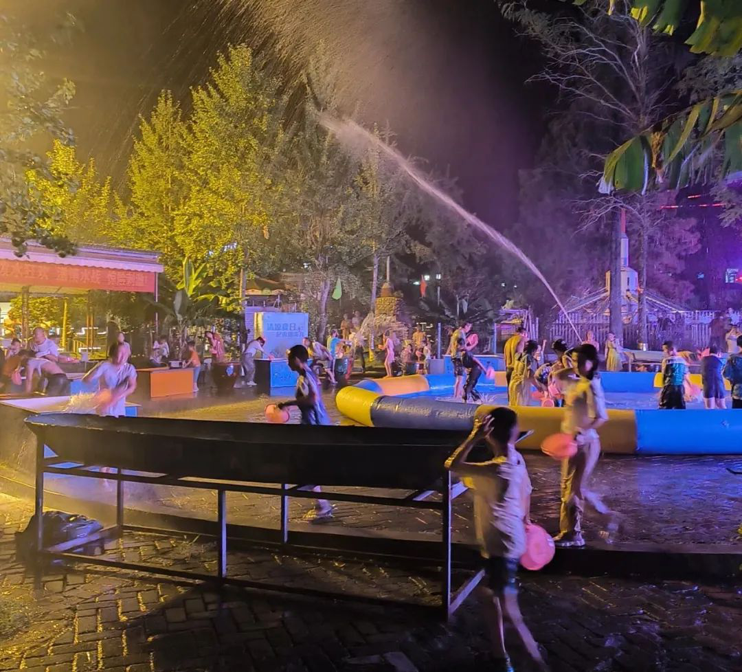 傍晚的古孝感鄉(xiāng)都民族歌舞、彩虹橋、雜技表演、潑水節(jié)……更是讓大家體驗到了云南傣族的異域風情。
