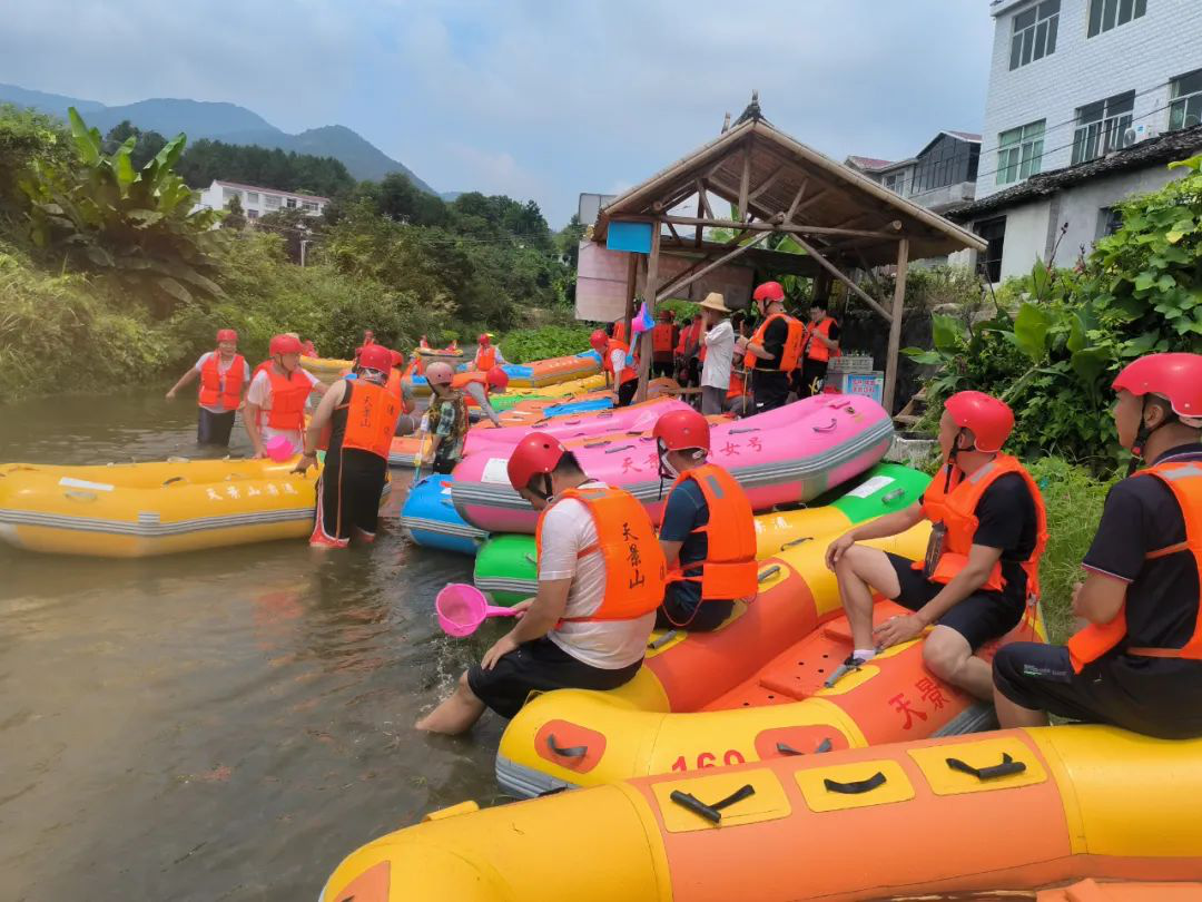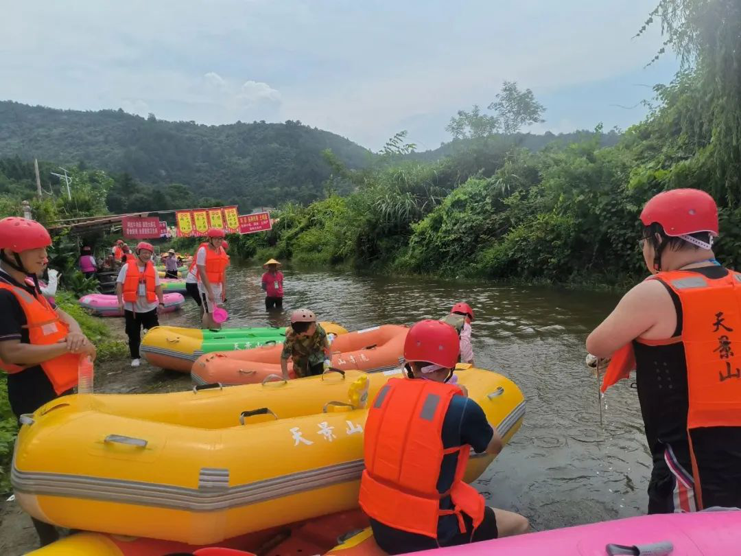 “漂了天景山,那才叫夏天”,夏天的正確打開方式那就是去漂流。本次團建的第二目的地,是麻城天景山飛瀑漂流,被譽為"華中落差第一漂",河道全長5.8公里,水面落差達260米,以險趣著稱,漂流滑道讓人幾乎全程尖叫,水流沖擊身體,涼爽席卷全身,真是人在前面漂,魂在后面追~;既有乘過山車的動感刺激,又有乘滑翔機的暢快淋漓;盡情體驗“艇在叢林漂,人在畫中游”之趣。