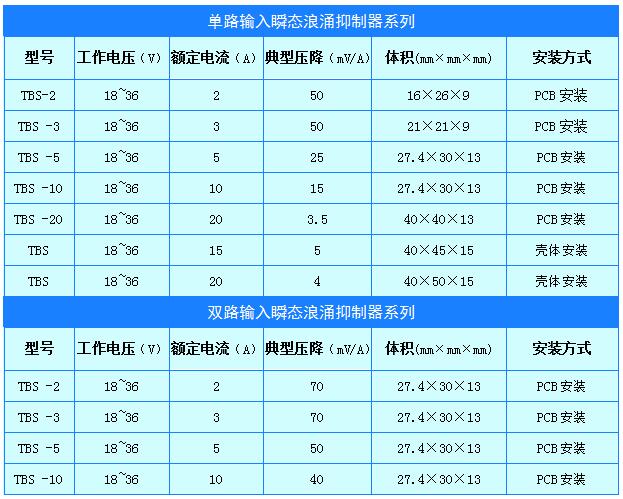 3、 額定工作電流下能承受80V/50ms 或50V/100ms 浪涌沖擊;